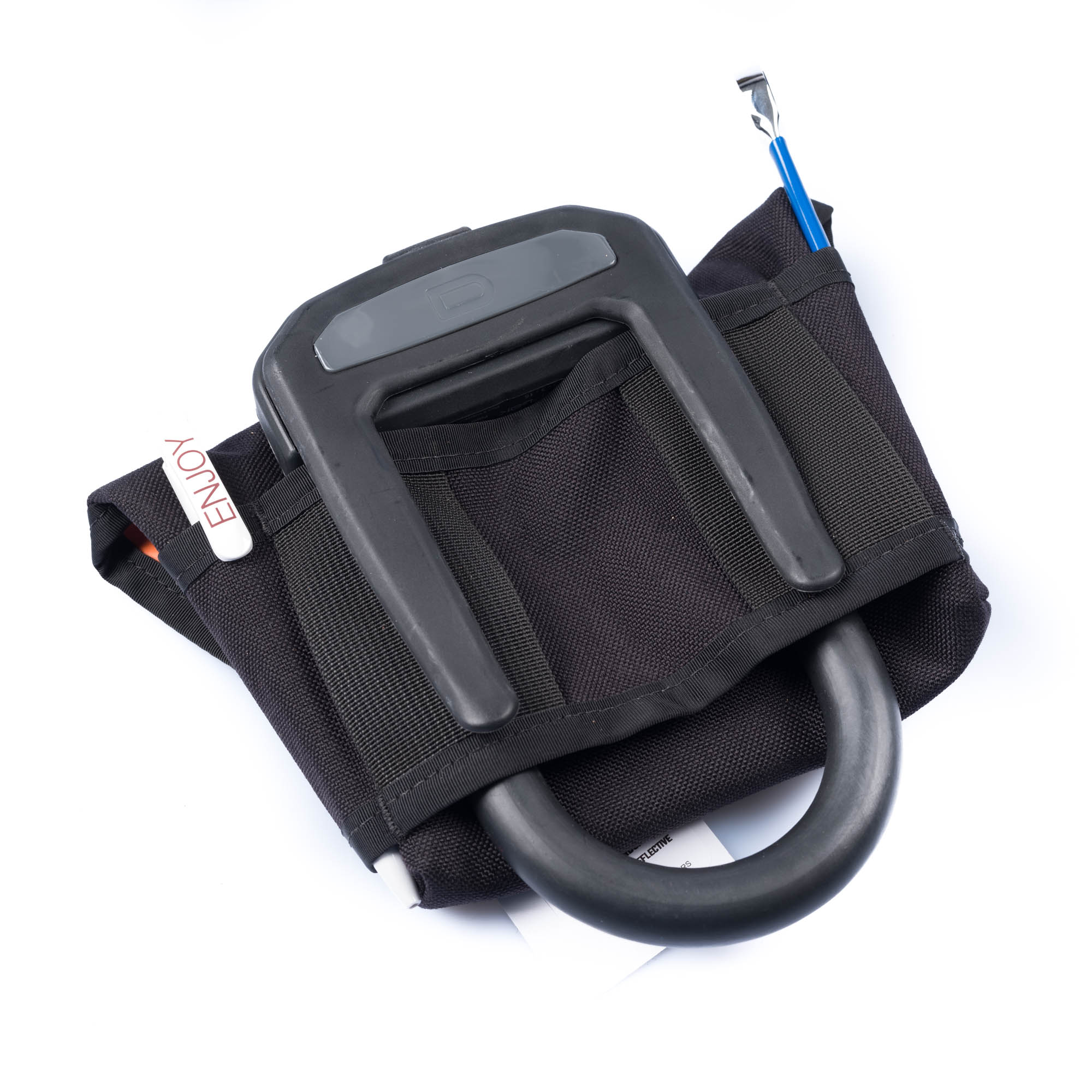 Cleveres Feature: Auf der Rückseite findest du eine Schlaufe, an der Schlösser mit bis zu 16 cm Breite eingehängt werden können.