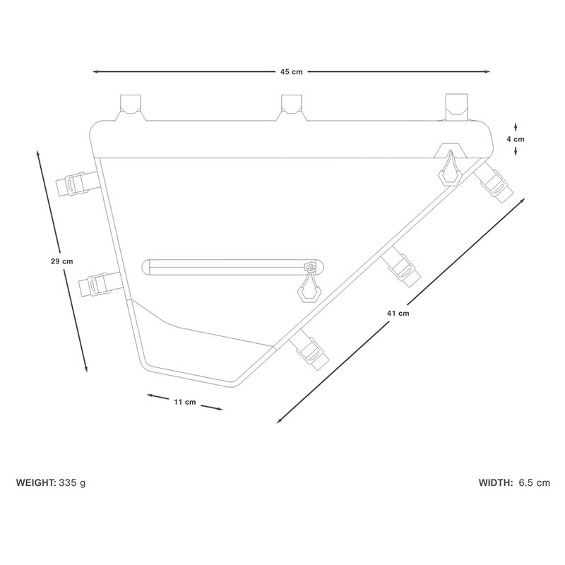 Diese Rahmentasche macht sich den gesamten Raum zwischen Ober- und Unterrohr zu Nutze und schafft viel Stauraum. Damit eignet sie sich perfekt für längere Bikepacking-Touren, auf denen du auch sperrige Gegenstände wie zum Beispiel Zeltstangen oder Kochequipment brauchst. Der niedrige Schwerpunkt einer Rahmentasche ist auch für’,s Handling und den Fahrkomfort vorteilhaft, denn damit sind schwere Lasten gut verteilt. Auch für Carbonrahmen sind die Taschen der Expedition-Serie ideal: Die insgesamt acht Befestigungspunkte verbinden die Full Frame Pack-Rahmentasche sicher mit dem Rahmen, ohne das Carbonmaterial zu beschädigen.