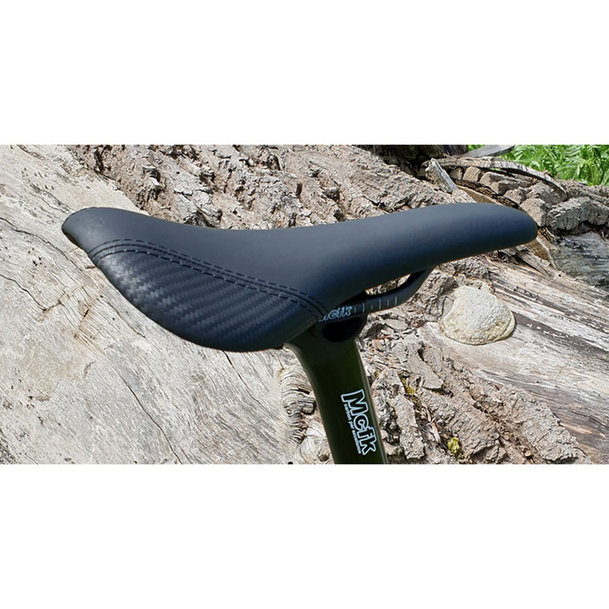 Dieser Sattel bietet mit seiner bequemen Polsterung und einer anatomischen Aussparung in der Mitte außergewöhnlichen Sitzkomfort und wiegt dabei nur 101 Gramm! Für die Polsterung wird ein Gewirke aus Kunststofffasern verwendet, die für eine lange Lebensdauer sorgen. Grundlage dieses Komforts bilden neben der Polsterung die enorm stabile, dennoch flexible Satteldecke und der strapazierfähige Lederbezug, der handgefertigt überzogen wird. Als Basis verwendet Mcfk den bewährten Carbonsattel, der in verschiedenen Breiten zum Einsatz kommt. Dieser 135 mm breite Sattel eignet sich für Rennräder, Crossräder und Mountainbikes.